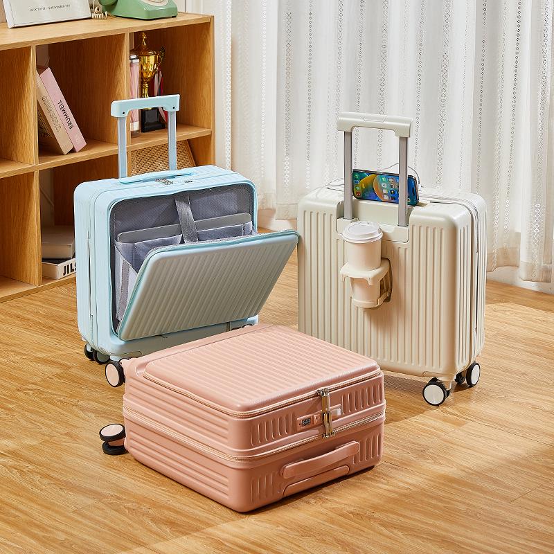 Front-Opening 20-Inch Carry-On Suitcase: Multi-Functional Trolley Case with Combination Lock for Men and Women.
