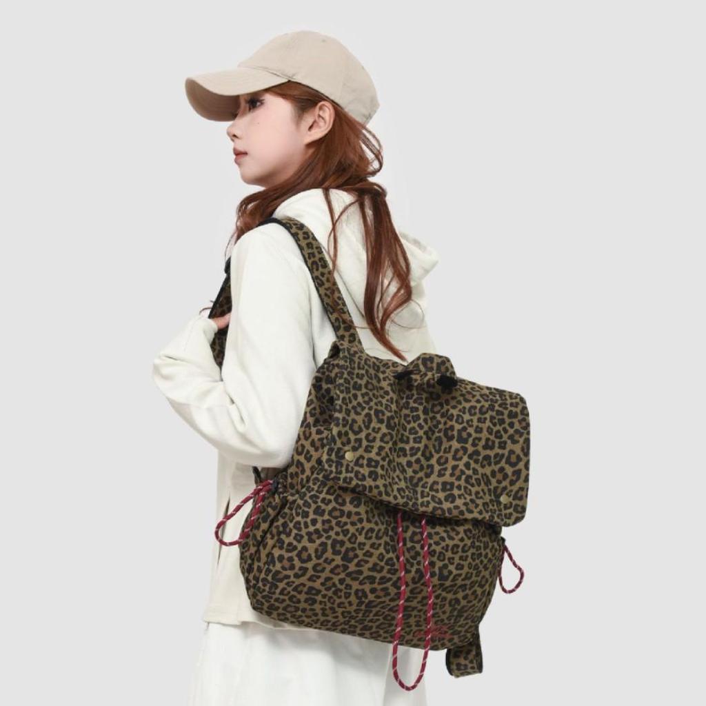 2025 Retro Leopard Print Damen Canvas Rucksack: Herbst/Winter College-Stil, lässige Tasche mit großem Fassungsvermögen