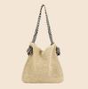 Marineblaue Schultertasche aus Stroh im koreanischen Stil - Handgefertigte vielseitige Strandurlaubstasche für Damen