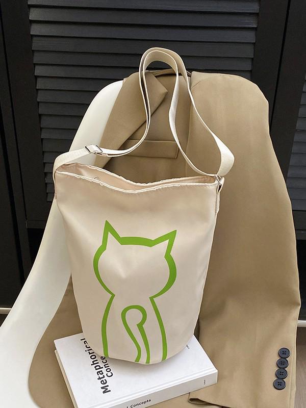 2025 Koreanischer Stil Damen Rucksack mit großer Kapazität zum Umhängen – Niedliche Kätzchen Eimer Tasche