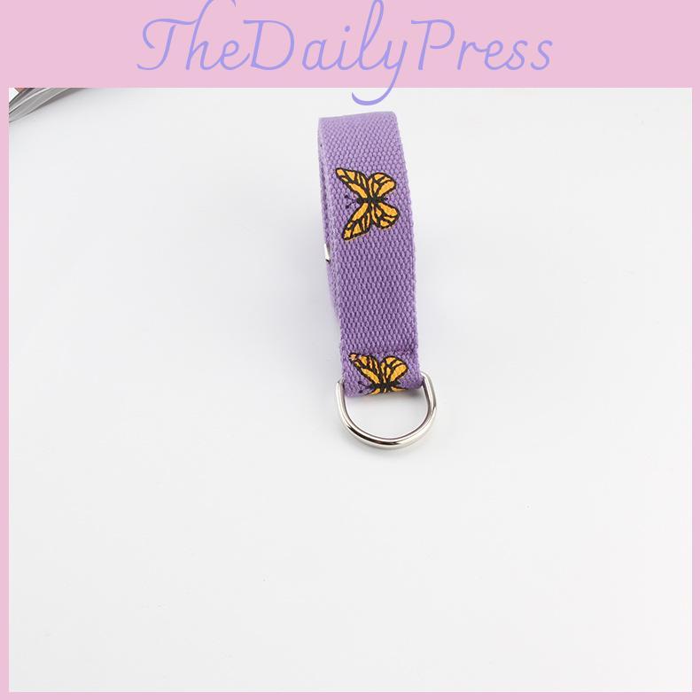 Belt Canvas Waist For Adults With Butterfly Print Double Ring Casual Buckle
