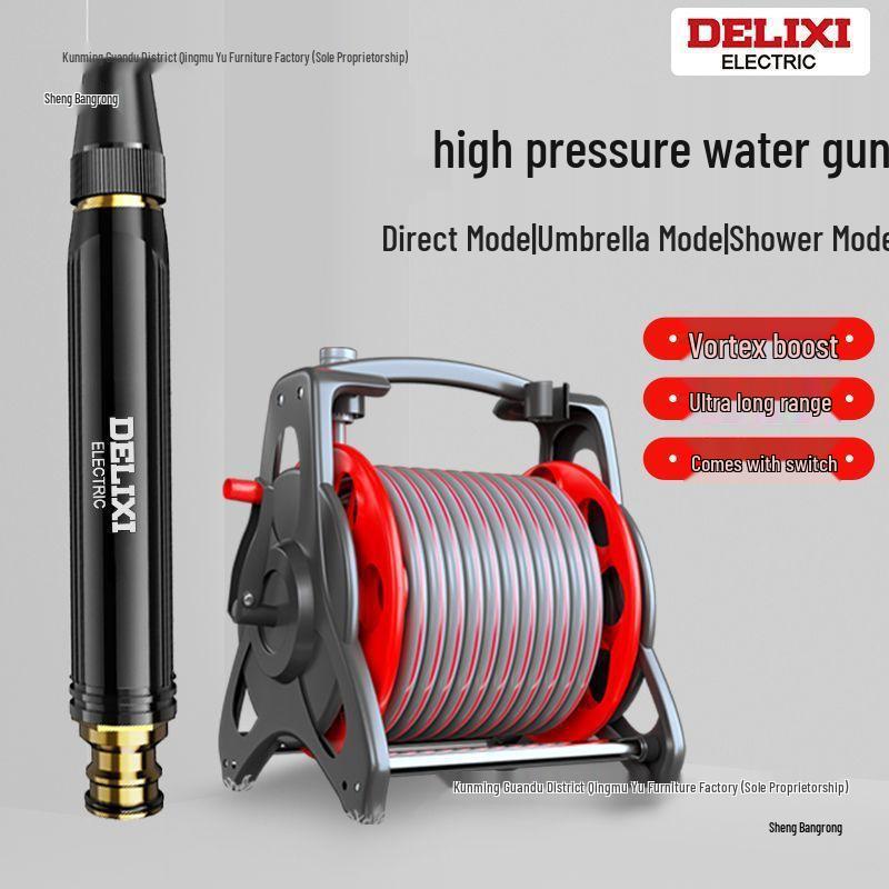 Hochdruckwasserschlauch mit Düse und Aufbewahrungsgestell für Autowäsche und Garten