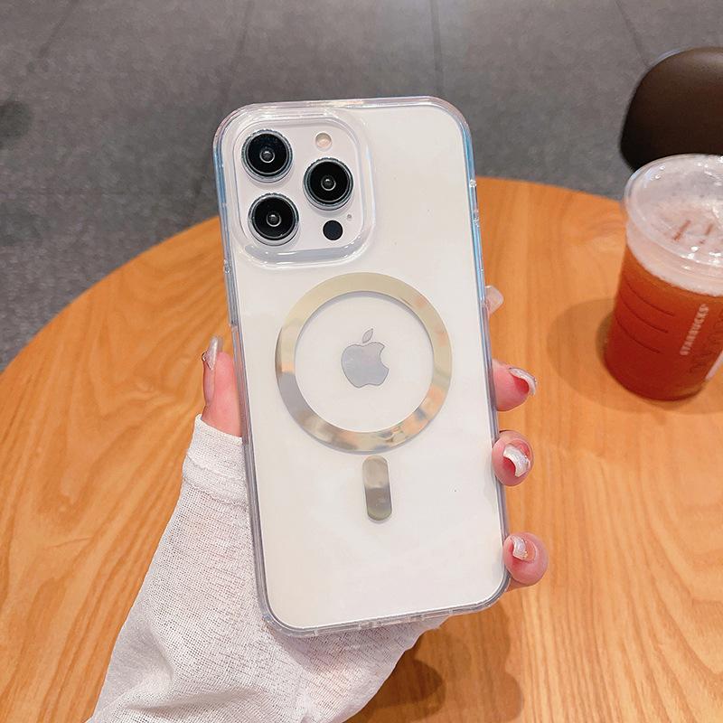 Handyhülle für IPhone15 Serie Kabelloses Laden IMD Sturzsicher Gold Glänzend Magnetring