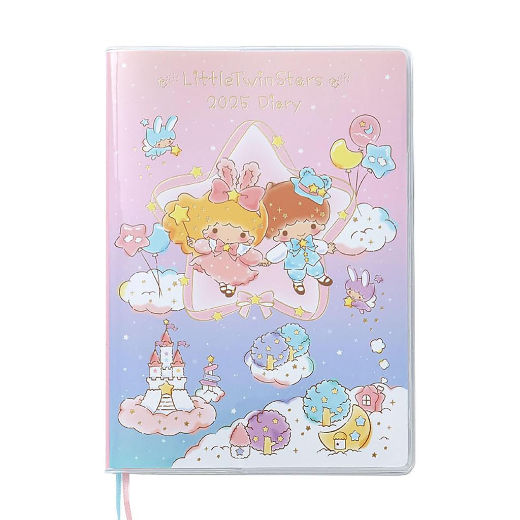 Sanrio B6 Tagebuch (Blocktyp) Little Twin Stars Planer 2025 (Beginnt im Oktober 2024) mit Terminplanaufklebern und Lesezeichen, 456322