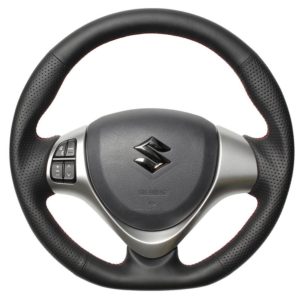 REAL All-Leather Steering Wheel with Red Stitching for Toyota Hustler (MR31S/MR41S) and Flair Crossover (MS31S/MS41S) (MR31-LPB-RD-HUS)