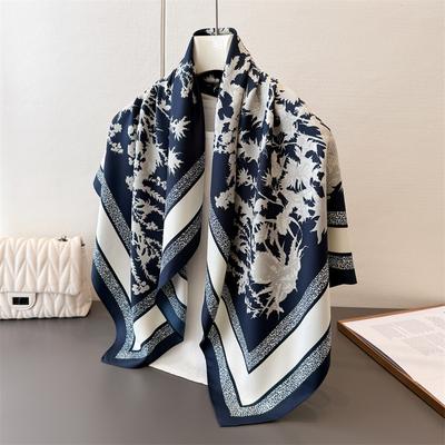 Kopftuch bedruckter Köperseide Großes quadratisches Tuch Kleines duftendes Seidentuch Damen Sonnenschutztuch Dekorative Schal 90cm