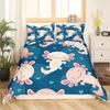 Axolotl Bettbezug Set Rosa Molch Wildtier Bettdeckenbezug mit Kissenbezügen Cartoon Oktopus Tier Kawaii Stil Einzelbett-Bettbezug
