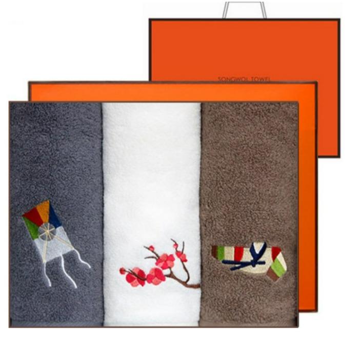 Ein luxuriöses 3-teiliges Handtuch-Geschenkset von Songwol, mit feiner Stickerei und hochwertigem 150g Baumwollgarn. Das Set enthält drei elegante Farben – Elfenbein, Dunkelgrau und Dunkelbraun – sorgfältig verpackt mit einer mitgelieferten Einkaufstasche für ein praktisches Geschenk.. Weich, saugfähig und langlebig, ist dieses Set ideal für den Heimgebrauch, für Urlaube, Feiern oder als hochwertiges Geschenk.