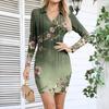 Damen V-Ausschnitt Lässig Print Langarm Figurbetontes Kleid