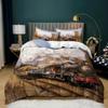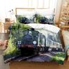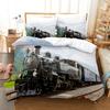 Steam Engine King Queen Duvet Cover Vintage Train Rail Bedding Set For Teens Adults Retro Transportation Polyester Quilt Cover