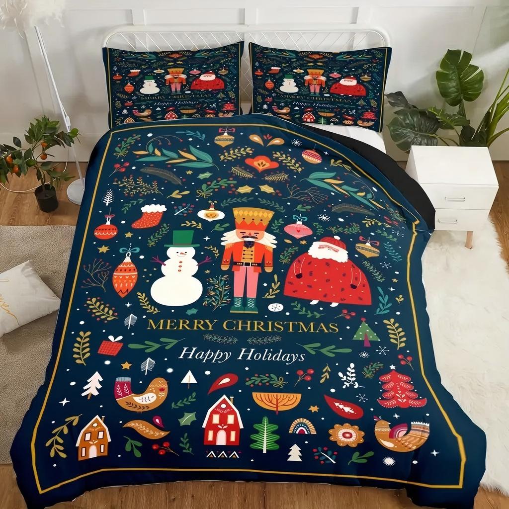 Snowman Santa Claus Christmas Tree 3D Printed Duvet Cover Christmas Style Bedding Set Soft Comfortable Quilt Cover Pillowcases