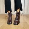 Britische Leder Schnür-Stiefeletten mit hohem Absatz Damen 2025 Herbst und Winter neue vielseitige eckige Spitze dicker Absatz dünne kurze Stiefel