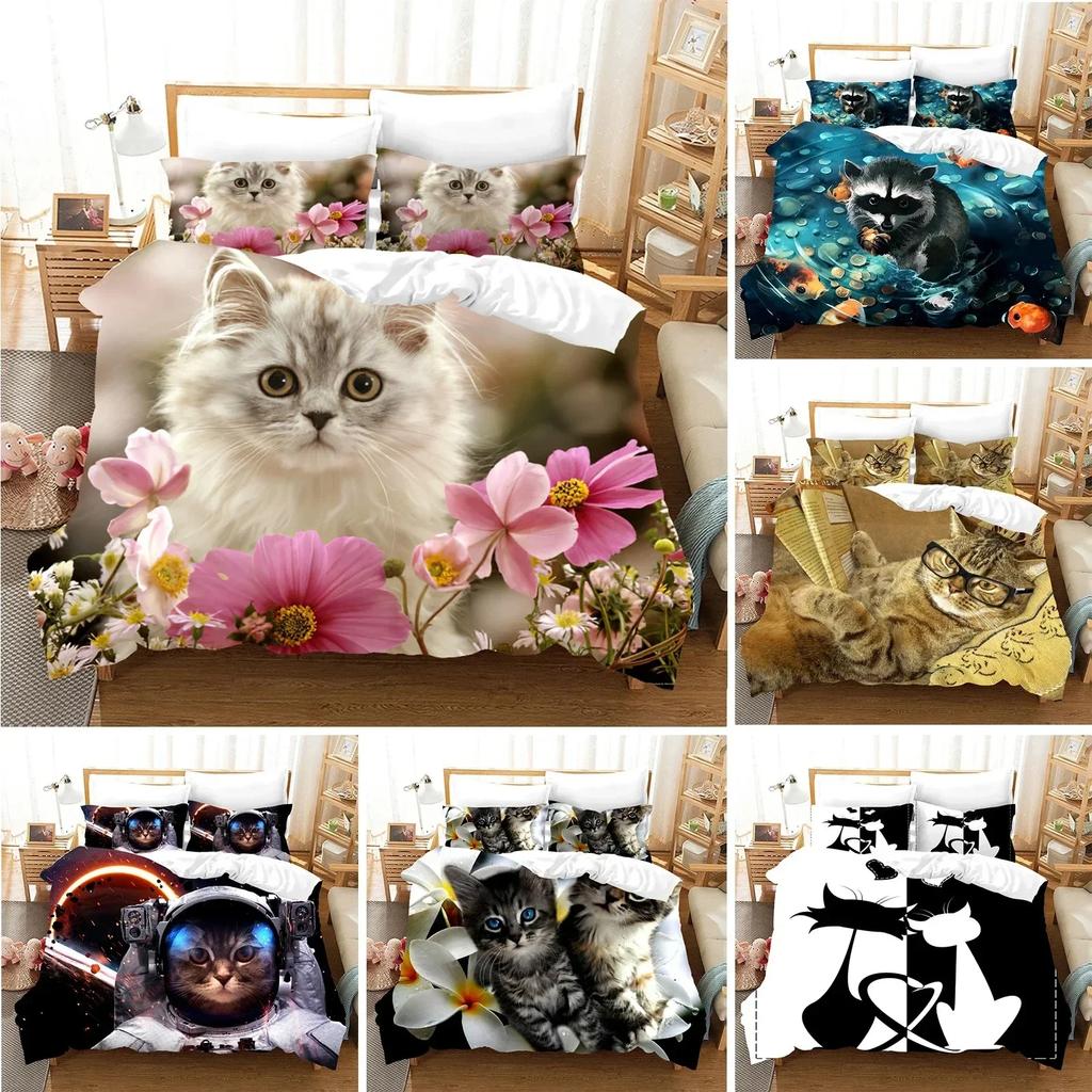 Liebliches Haustier Katzenbettwäsche Set Tier Lustig Bettbezug Kissenbezüge Bettdeckenbezug Bettwäsche Bettwäsche Einzelbett Doppelbett Queen-Size King-Size