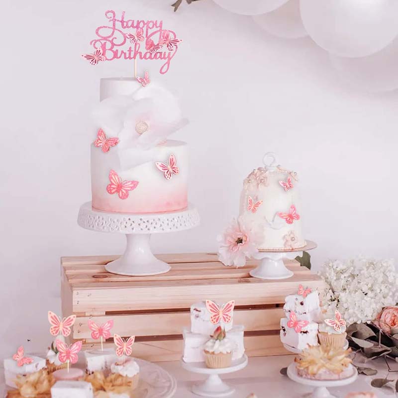 13 Stück Rosa Schmetterling Kuchen Topper Happy Birthday Kuchen Topper 3D Schmetterlingsdekorationen für Mädchen Shower Geburtstagstortendekorationen