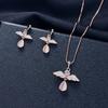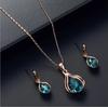 Korean Version New Oval Gemstone Necklace With Full Diamond Earrings Necklace Set