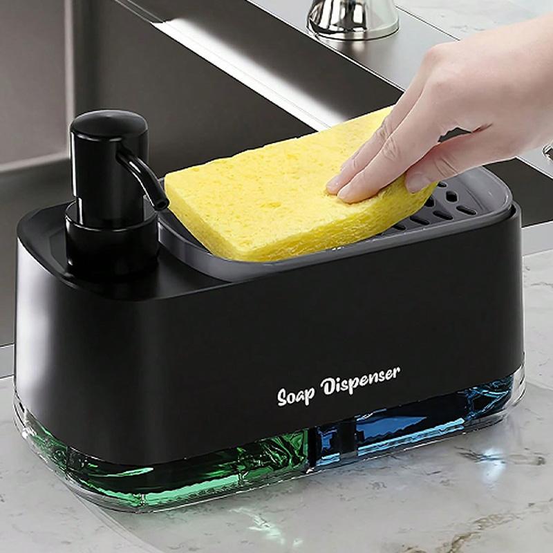 Doppelter Seifenspender mit Schwammhalter Manueller Druck Seifendose Hand- und Spülseifenspender für Spülbecken Spülmittelspender