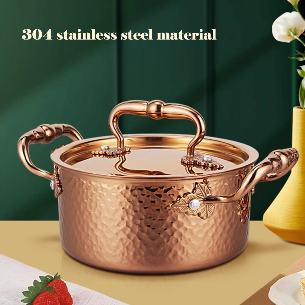 304 Edelstahl Doppelohr Topf verdickt gehämmert Muster Einzelner Topf Mit Deckel Zuhause Selbst- Hot Pot Schmortopf Kochgeschirr