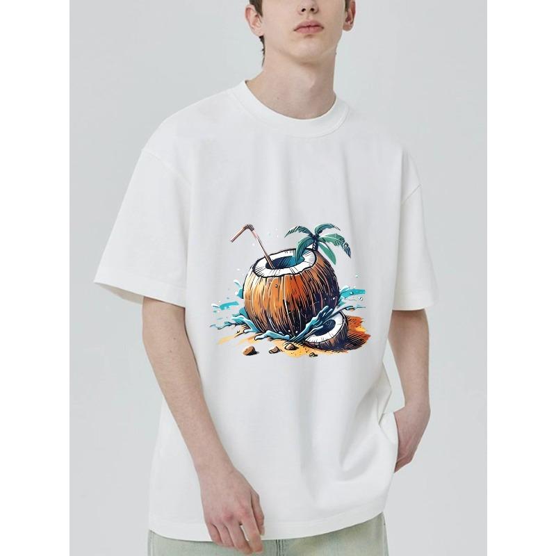 Rundhalsshirt Schwarz Kokosnuss-Cocktail mit Palme und Strohhalm Sommer Strandurlaub Kleidung