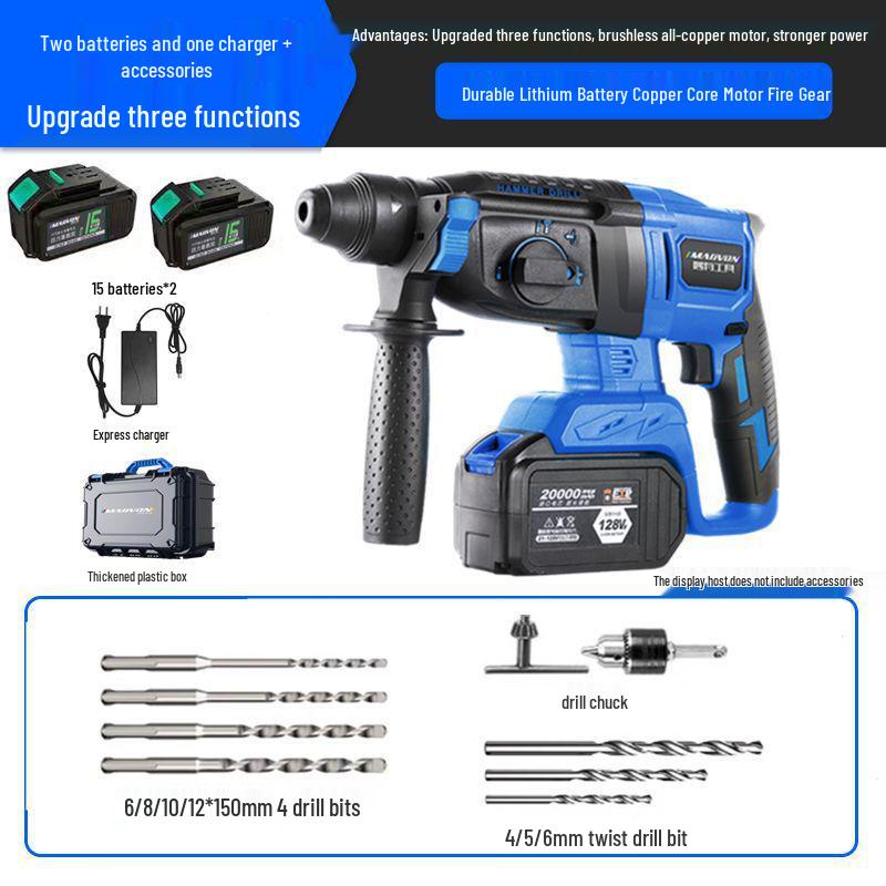High-Power Brushless Lithium-Ion Electric Hammer Drill - Multifunctional Impact and Electric Pick for Concrete
