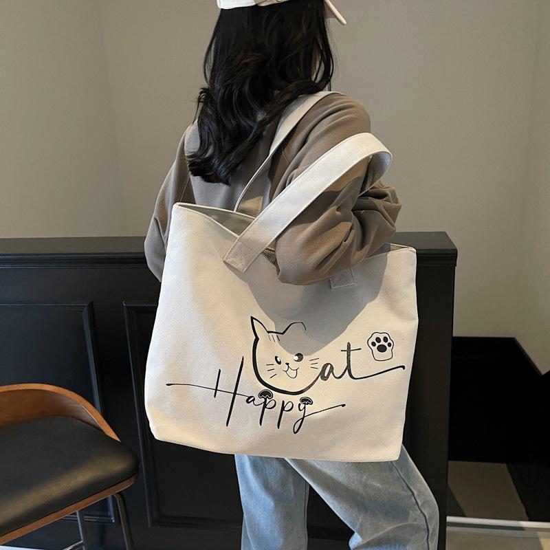 2025 Herbst neue Canvas-Tasche tragbar Schulter große Kapazität Cartoon niedlich Mode einfach Nische Tragetasche