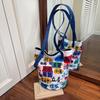 2025 summer contrasting colors Korean version fashionable new handbag bucket bag graffiti handheld lady bag make-up bag to work