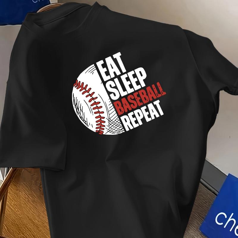 Eat Sleep Baseball Repeat Graphic T-Shirt,Soft Breathable & Fade-Resistant, Classic Fit for Daily Casual Wear