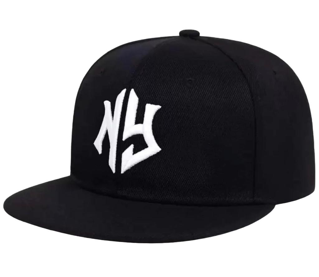 [sproutsy] Flat Visor Cap with Embroidered Logo, Snapback Hat, NY (JP, Numeral Size, 58.0 cm, Black)