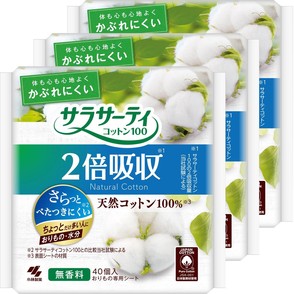 Sarasaty Baumwolle Doppel Saugkraft Slipeinlagen für Leichten Vaginalen Ausfluss 40 Stück x 3 Packungen [Großeinkauf] 100% Ausfluss, Unparfümiert,