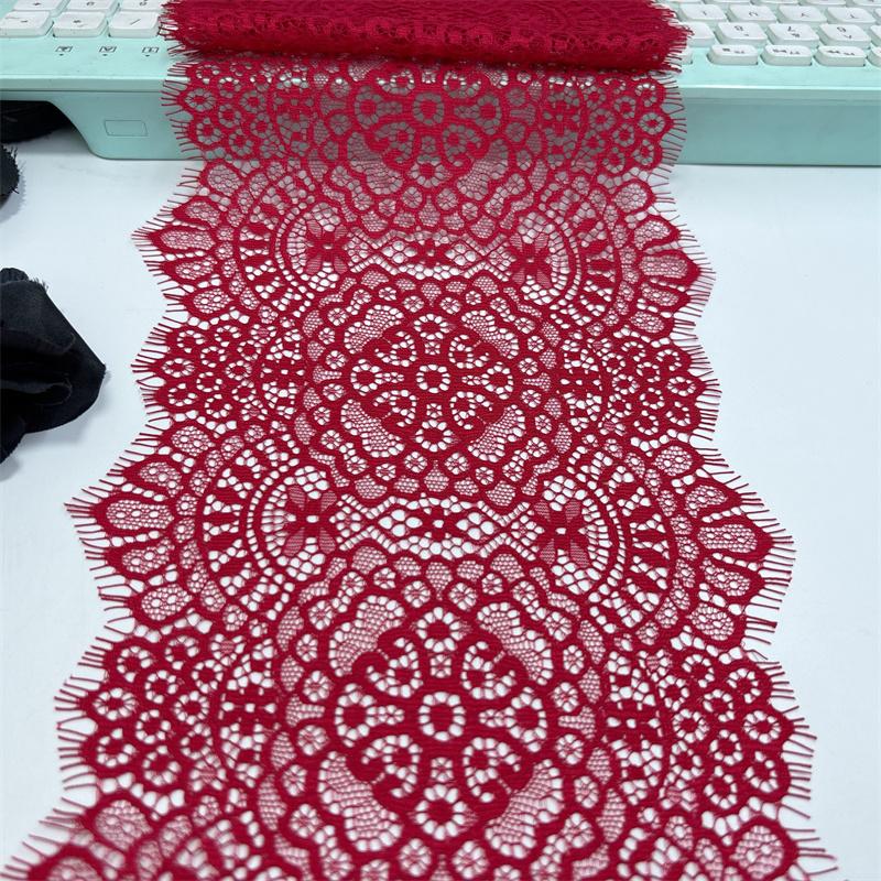 3m x 18.5cm French Chantilly Lace, Non-stretch Dark Red Eyelash Net Lace Fabric for Sewing, Bra, Underwear, Lingerie, Dress, Garment, Crafting