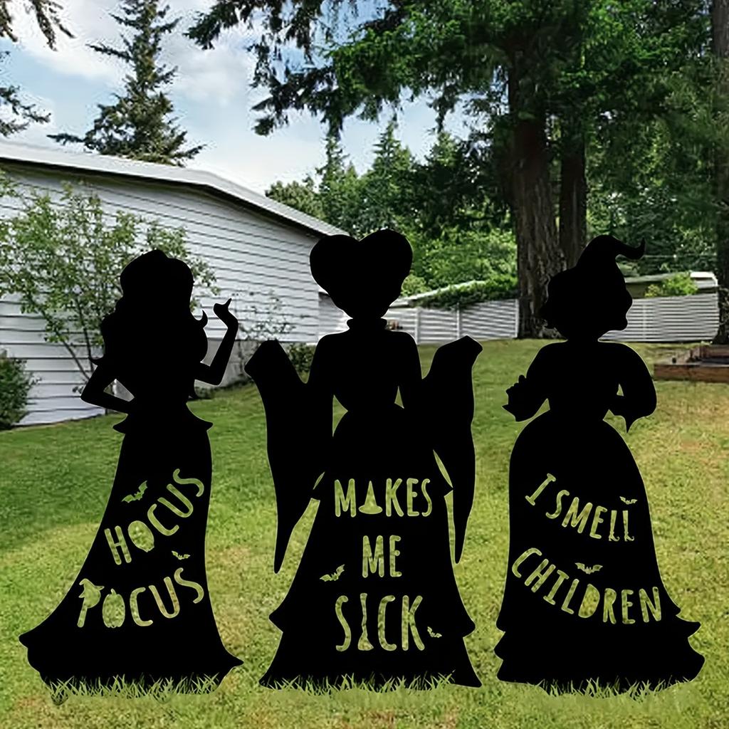 1pc Halloween Witch Iron Silhouette Patio Sign with Stake Outdoor Lawn Decoration Halloween Party Supplies