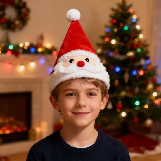 Yousheng Weihnachtsmannmütze Weiche Plüsch Weihnachtsmütze mit Licht-Ton-Show Elastisches Band Weihnachtsmütze Kostümzubehör Feiertagsparty Geschenk