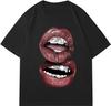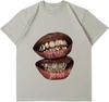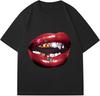 Chic Lips Goldene Zähne Vintage T-Shirt Rock Goth Lässiges T-Shirt Kleidung Männer Übergroßes Baumwoll-T-Shirt Harajuku Y2k Oberteile Streetwear