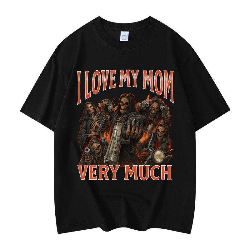 Ich liebe meine Mama sehr Lustiges Meme T-Shirt Herren Damen Gothic Vintage Kurzarm T-Shirts Mode Lässig Übergroßes T-Shirt