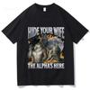 Versteck deine Frau Alpha hier Lustiges Wolf Emoji T-Shirt Herrenmode Hip Hop Baumwolle Persönlichkeit Street Fashion Lässiges T-Shirt Tops