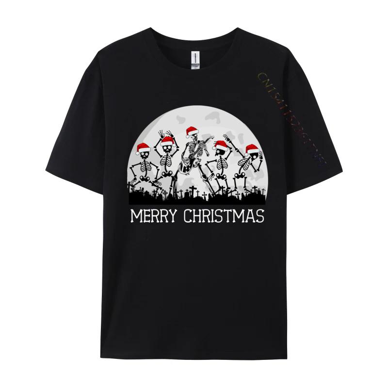 Skelette tanzen zu Rockgitarre auf Friedhof Frohe Weihnachten T-Shirt Kleidung Mann T-Shirts Einfaches T-Shirt Nagelneu