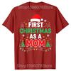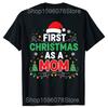 Erstes Weihnachten als Mama Familienpassende 1. Weihnachts-T-Shirts Herren 100% Baumwolle Locker Übergroß Rundhalsausschnitt Hip Hop T-Shirt