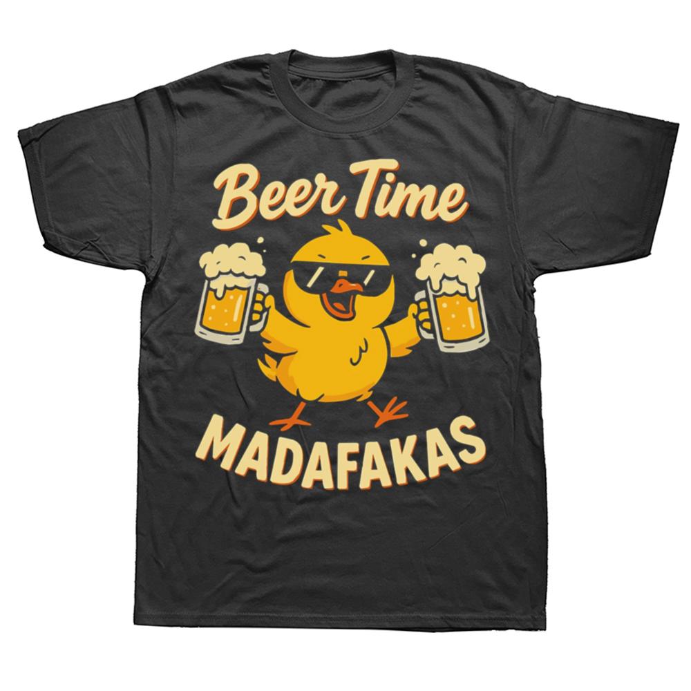 Bierzeit Madafakas T-Shirt Retro Trinkende Bierliebhaber Grafik T-Shirts EU Größe 100% Baumwolle Weich Unisex Sommer T-Shirt Tops