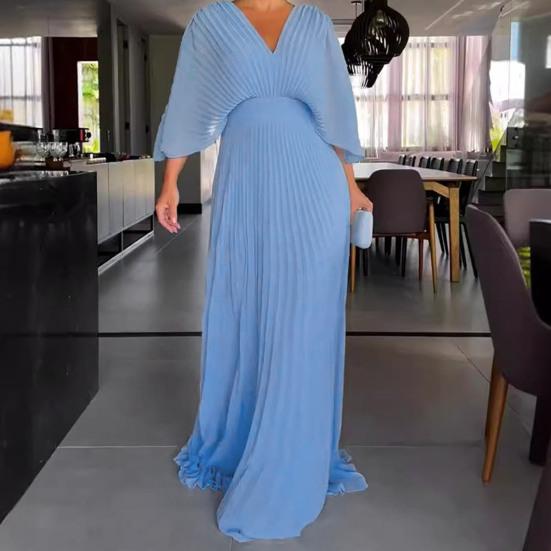 Erhöhen Sie Ihren Stil mit diesem Polyesterkleid mit lässiger und lockerer Passform. Der bequeme, weiche und leichte Stoff sorgt für ganztägigen Tragekomfort. Das lange Kleid mit V-Ausschnitt und gespleißten Faltendetails sorgt für einen schlankmachenden Effekt und einen Hauch von Eleganz. Dieses einfarbige Kleid strahlt Einfachheit und modischen Stil aus.