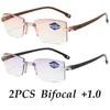 2 Stück Randlose Bifokale Progressive Lesebrillen Herren Damen Nah Und Fern Anti-Blaulicht Brillen Rechteckige Brillen Brillen