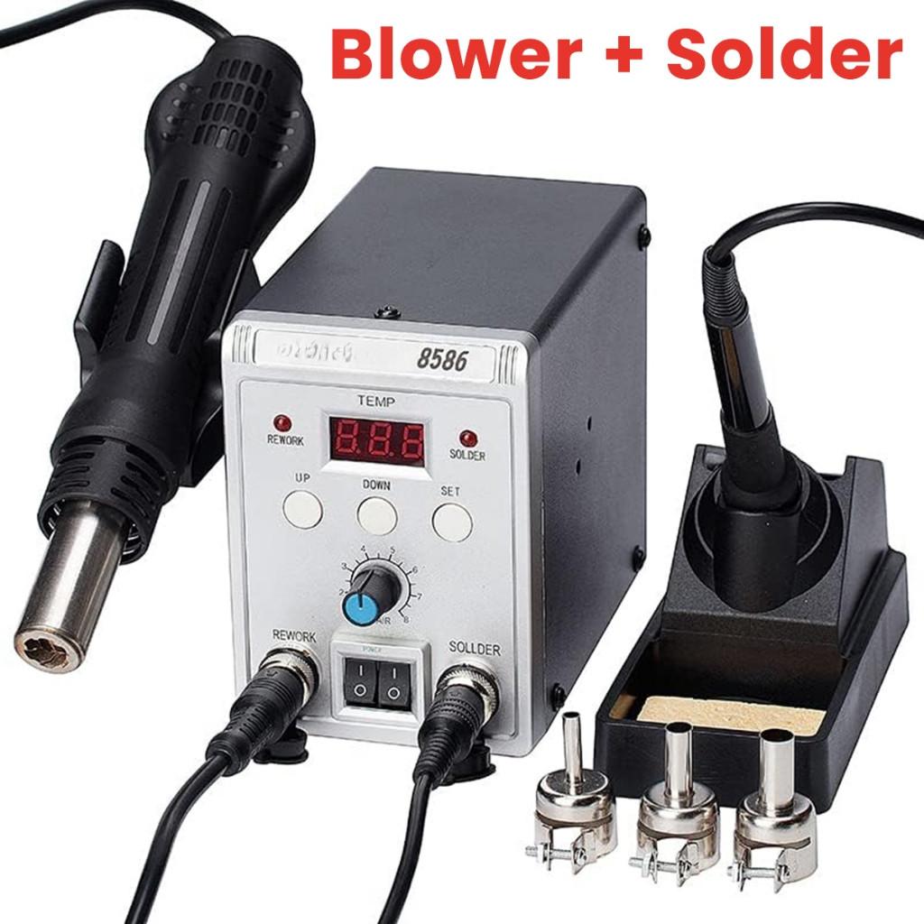 This is a brand new 2 in 1 SMD Rework Soldering Station 8586. Alloy metal body with highquality silicone shell features elegant appearance and power saving. You can use hot air gun and soldering iron separately, with no interference with each other.