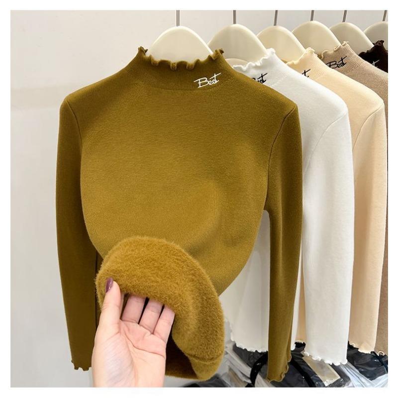 Einteiliger Samtpullover für Damen Verdickter Samt Warm Winter Vielseitiger Halbpullover Innenschichthemd