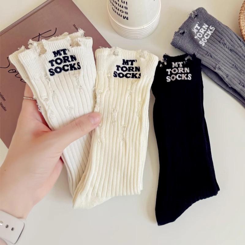 Damen Frühling und Sommer Dünner Stil Trend Neue Buchstaben Loch im Rohr Stapelsocken
