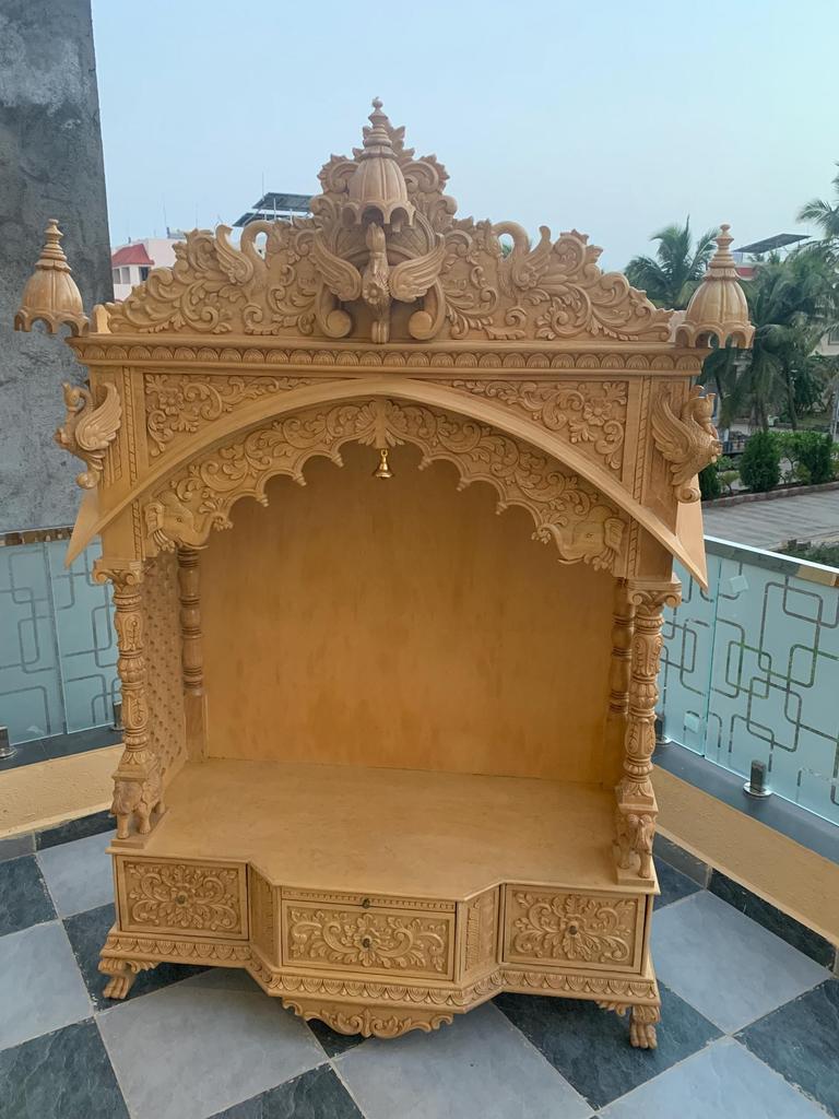 Handgeschnitzter Hindu-Tempel aus Teakholz mit LED-Beleuchtung