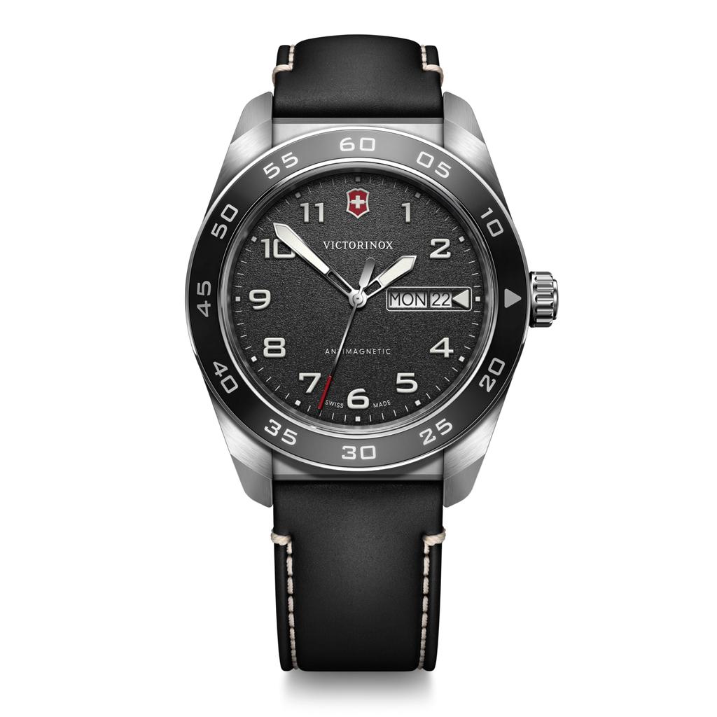 VICTORINOX SWISS ARMY Analog Quartz Black Black Leather Stainless Steel Case Strap Brand Name Black Leather Band 242041 Watch, Waterproof, Men's