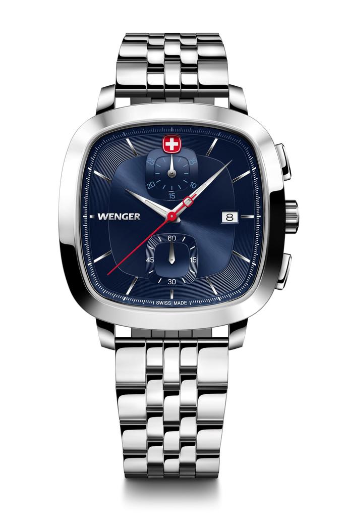 WENGER VINTAGE CLASSIC CHRONO Watch with Stainless Steel Case Blue Silver Stainless Steel Quartz 50m Water Gift Idea Men's (316L), Dial, Bracelet,