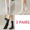 3 Pairs Lace Trim White Thick Summer Thin Socks Women's Breathable Mesh Hollow out Wood Grain Edge Mid-Calf Socks