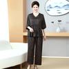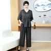 Übergröße Lässiges V-Ausschnitt Tunika-Top und Hosen Set für Mittelalte und Ältere Sommer Locker Zweiteilig