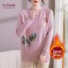 YUZHAOLIN Damen Mid-Age Qipao Kragen Fleecegefütterter Pullover