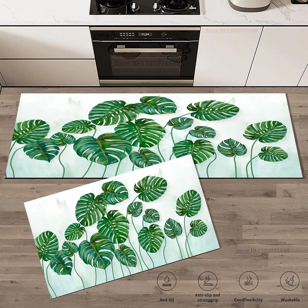 Schlichter Stil Grünes Blätter-Muster Rutschfester Küchenteppich Wohnzimmer Eingang Fußmatte Teppich Waschbare Matte Heimdekoration