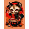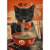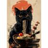 Japanische Katze isst Nudeln Leinwandposter Katze Kaffee Bonjour Mon Amour Küchenwandkunst Drucke für modernes Wohnzimmer Heimdekor